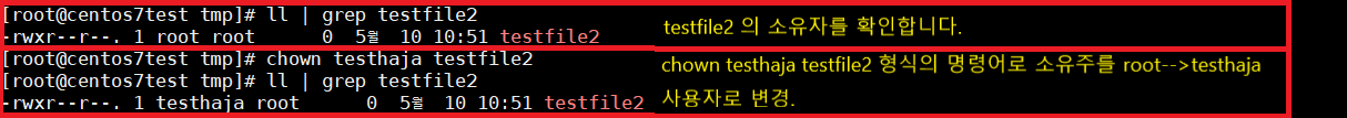 소유주가 root에서 testhaja 사용자로 잘 변경이 된 걸 확인할 수 있습니다.